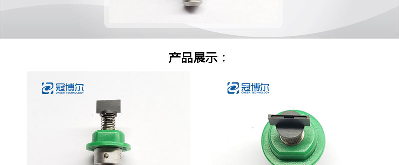 此款JUKI异形吸嘴是用于吸取排插,由于排插端面的吸取位太窄,而且不平整,所以我们把吸嘴的头部尺寸做的非常窄,可直接伸到排插根部的平整面吸取,以此解决取料问题。